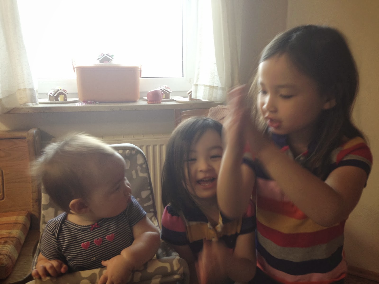 On with the rest of the happenings around the house. Here, the girls are trying to teach the baby how to say blessing before the meal...it was quite an amusing ordeal.